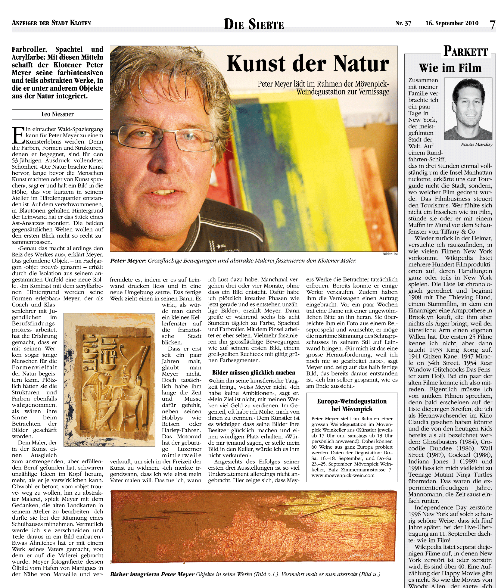 4. Vernissage 16.-18. und 23.-25. September 2010 - bei Mövenpick Weinkeller in Kloten Zum 2. Mal bei Mövenpick Wein in Kloten - verbunden mit einer Grossdegustation von über 60 Top-Weinen aus Europa !