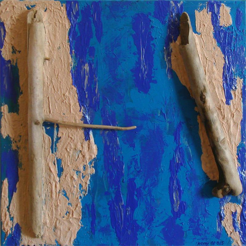 Acryl, Schwemmholz, Sand, 50 x 50 cm Februar 08
